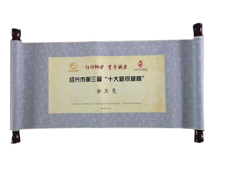 - 董事長金玉兔榮獲"紹興市第三屆十大新銳越商"